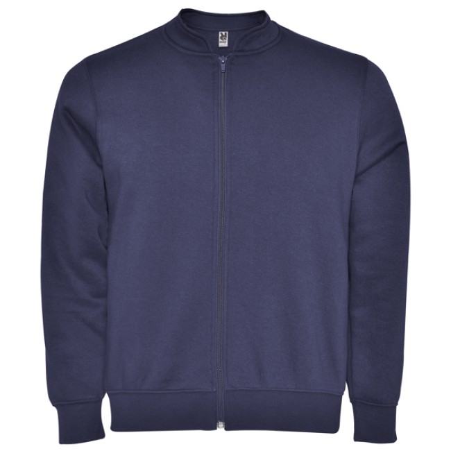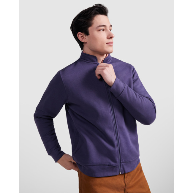 Felpa con interno spazzolato a maniche lunghe e colletto coreana. Copri cuciture rinforzate sul collo. Zip centrale con tiretto. Tasche laterali. Costina 1x1 su polsini e girovita.