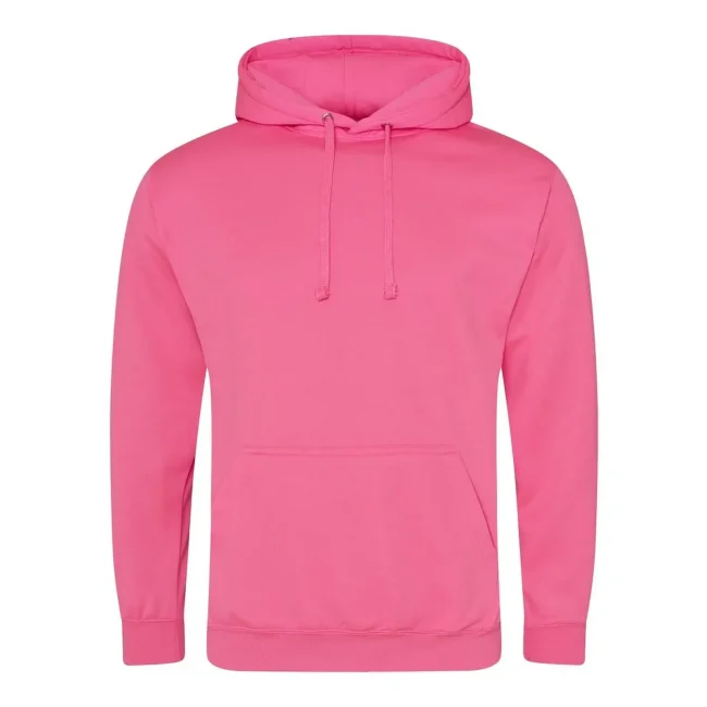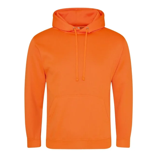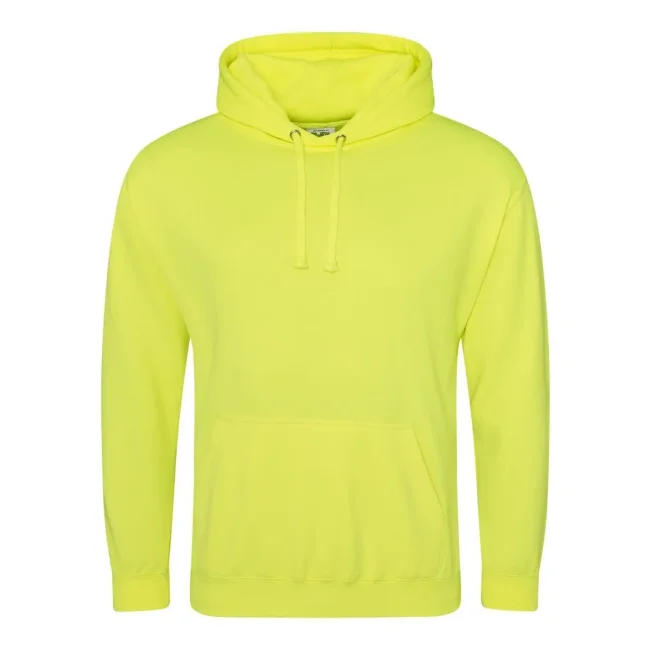 80% poliestere, 20% cotone ringspun. Felpa con maniche set-in, cappuccio con cordoncino piatto tono su tono, tasca a marsupio, polsini e orlo inferiore in costina, etichetta strappabile, felpata internamente, struttura con cuciture laterali.