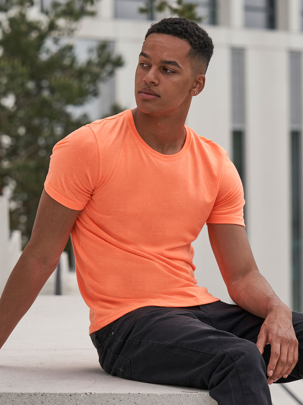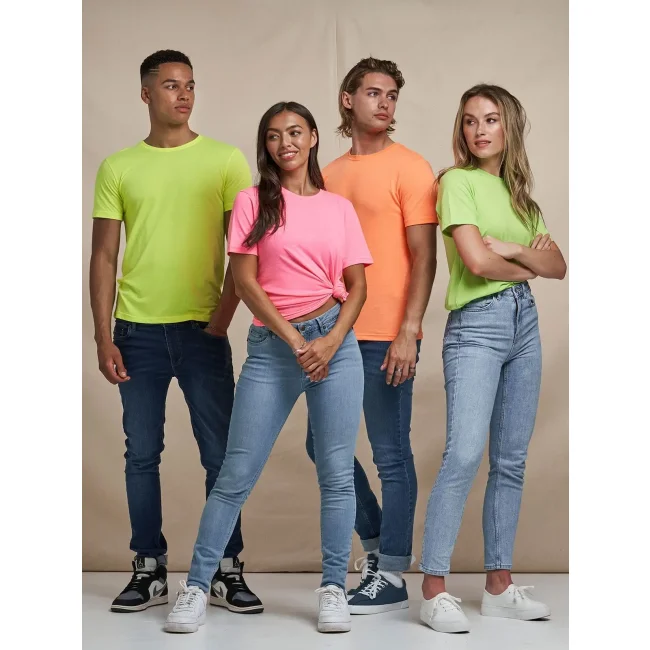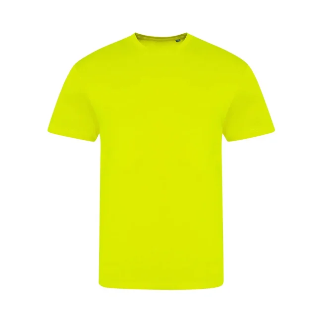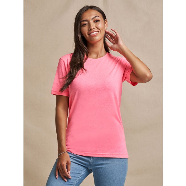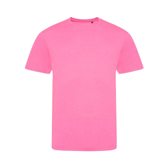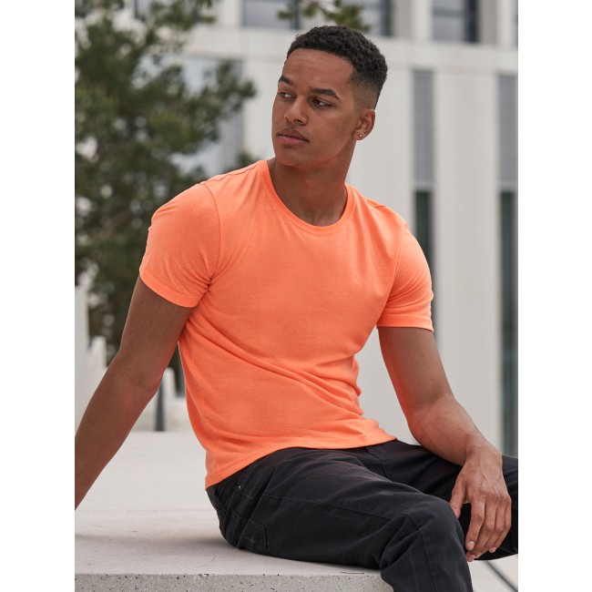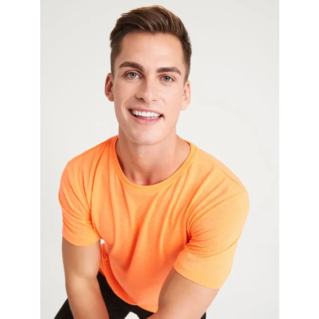 50% poliestere, 25% viscosa, 25% cotone. T-shirt a maniche corte con girocollo a costine, look moderno, tessuto tri-blend, nastro di rinforzo sul colletto, doppie cuciture su maniche e orlo, superficie eccellente per stampa e ricamo. Colour coded black for Unisex. Una sola etichetta con la taglia, perfetta per il rebranding.