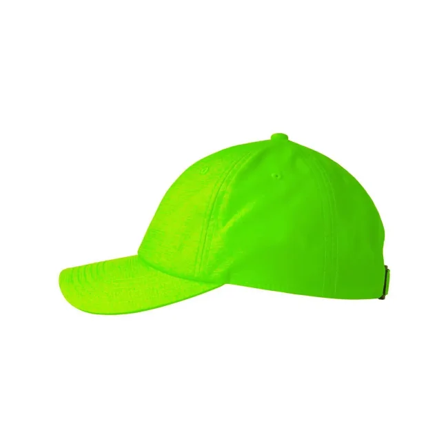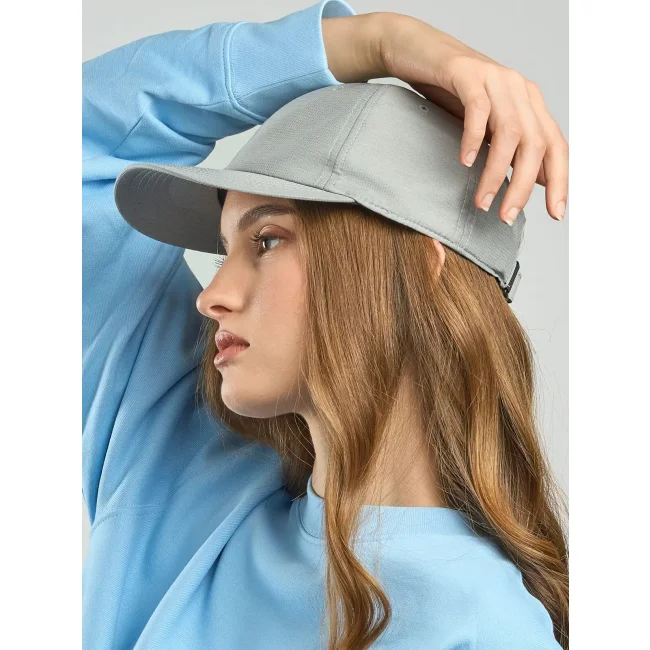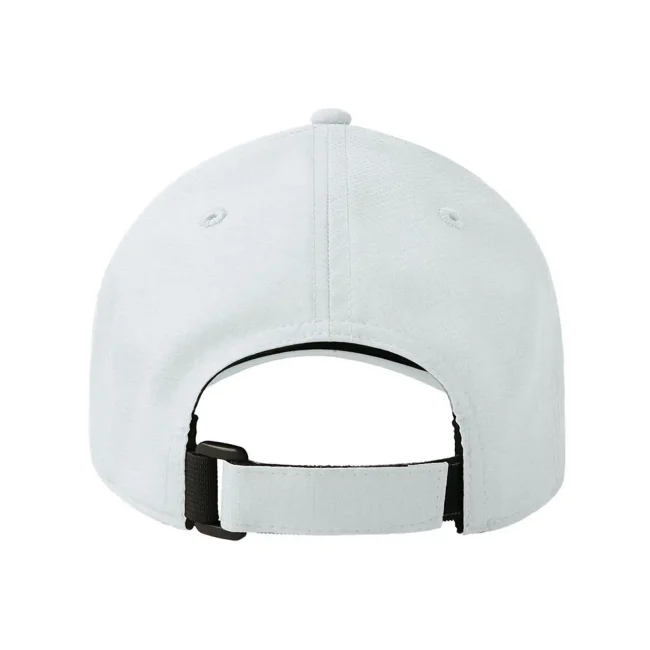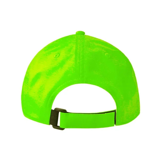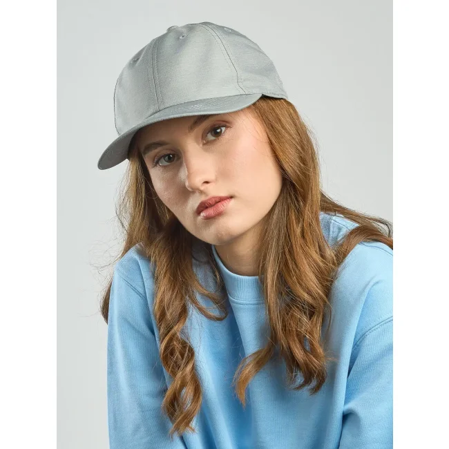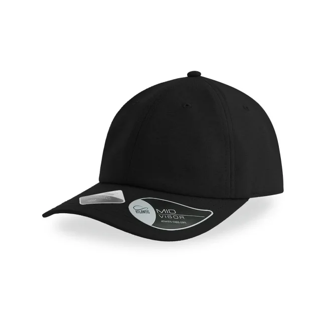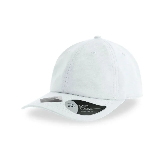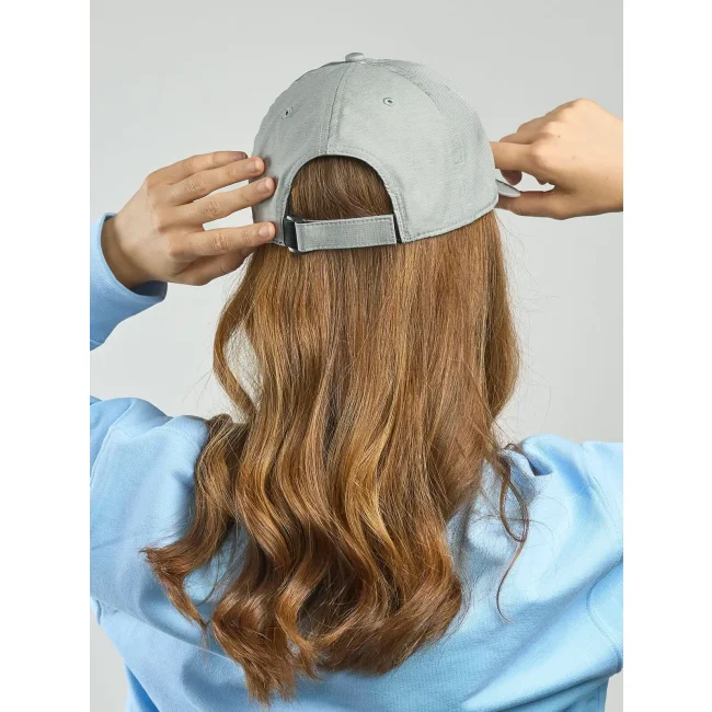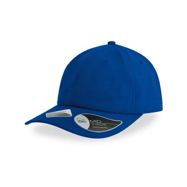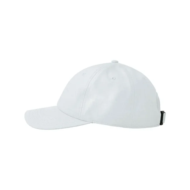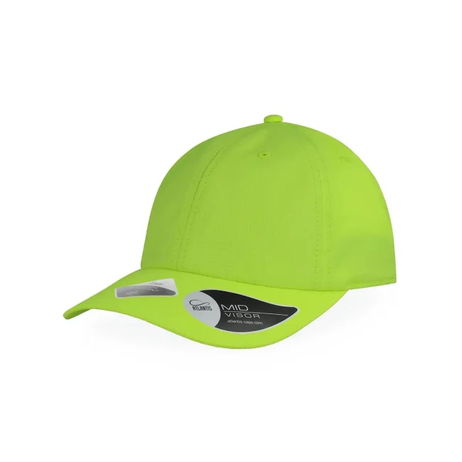 100% poliestere. Cappellino baseball non strutturato a 6 pannelli, visiera precurvata, occhielli ricamati, chiusura in velcro di alta qualità, 6 cuciture sulla visiera. Tessuto idrorepellente molto leggero con fascia antisudore dry-tech, etichetta removibile.