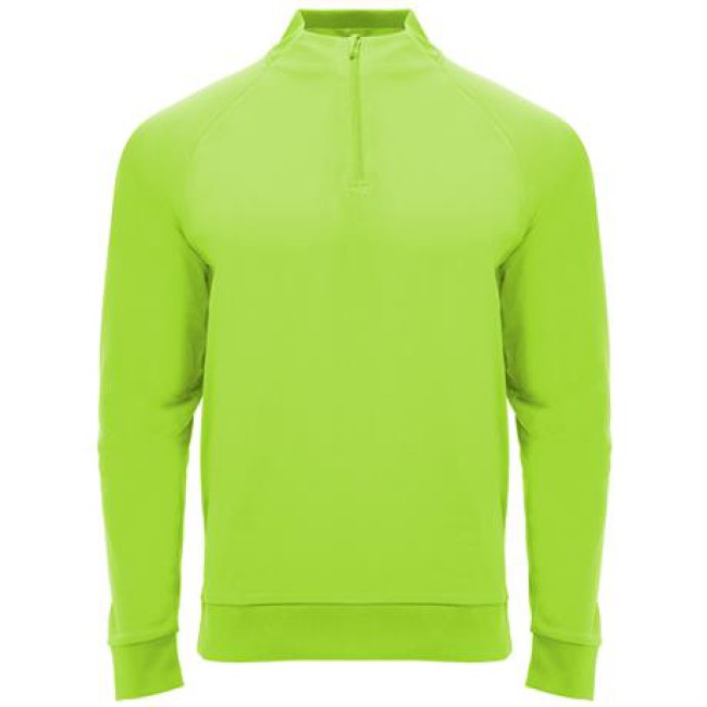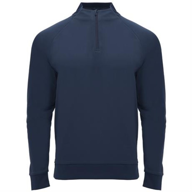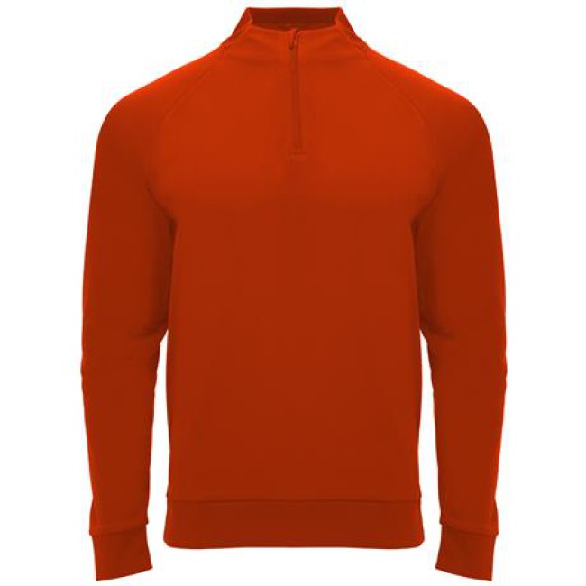 Felpa manica lunga stile ranglan.1. Interno felpato.2. Collo con mezza cerniera e copri cuciture di rinforzo al suo interno in tinta.3. Parte posteriore del collo , polsini e girovita in costina 1x1.