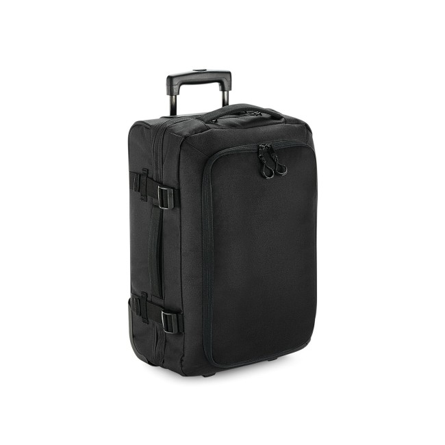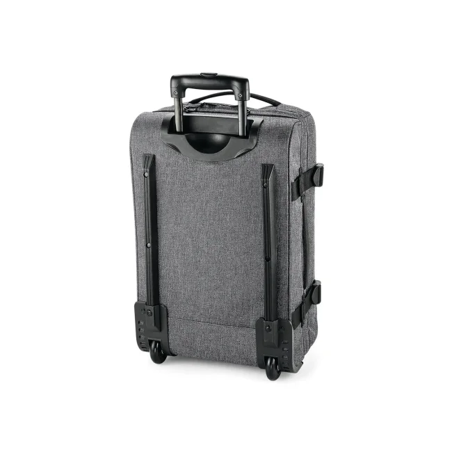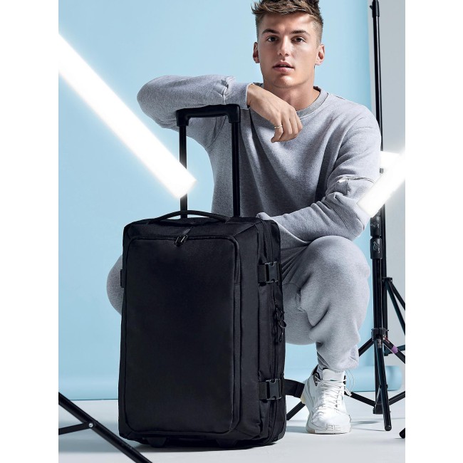 100% Poliestere 600D. Trolley con scomparto imbottito per laptop (15.6"). Scomparto principale con zip con chiusura con blocco, scomparto frontale con zip e divider interno in rete, tasca interna con zip, doppia impugnatura. Idoneo per la maggior parte delle compagnie aeree, ruote integrate. Etichetta removibile TearAway. Dimensioni: 35 x 54 x 30 cm. Chiuso: 35 x 54 x 20 cm. Capacità: 40 litri. Massima area di stampa: 22 x 36 cm.
