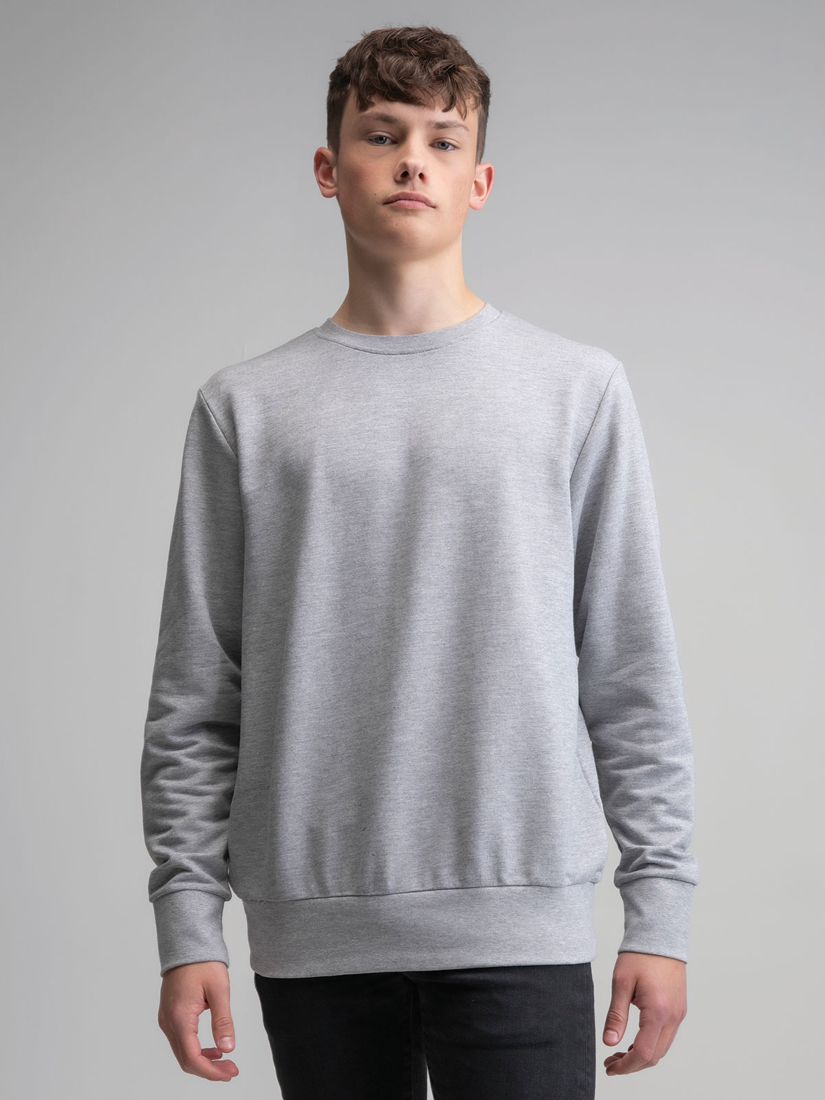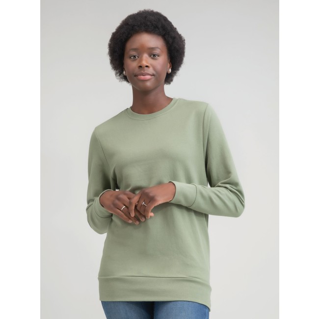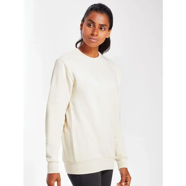 80% cotone organico 20% poliestere riciclato rPET. Felpa unisex girocollo con maniche set-in. Colletto, polsini e orlo in costina. Nastro di rinforzo tono su tono al collo. Etichetta removibile al collo. Etichetta con istruzioni di lavaggio in cotone organico.