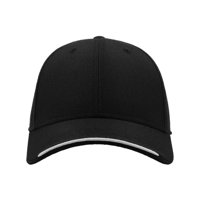 100% poliestere. Cappellino a 6 pannelli, occhielli ricamati, pannello frontale rinforzato, visiera pre-curvata, chiusura in velcro, 4 cuciture su visiera, parasudore in poliestere, piping in contrasto, etichetta removibile, taglia unica. Nuovo codice: ATESTS