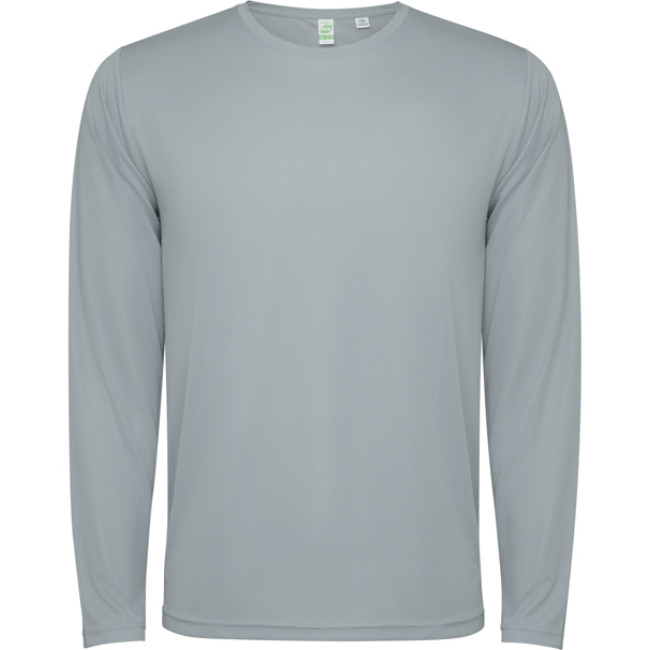 Maglietta tecnica unisex a maniche lunghe. Colletto con cuciture coordinate. Orlo posteriore leggermente più lungo rispetto a quello anteriore. Cuciture laterali spostate in avanti.