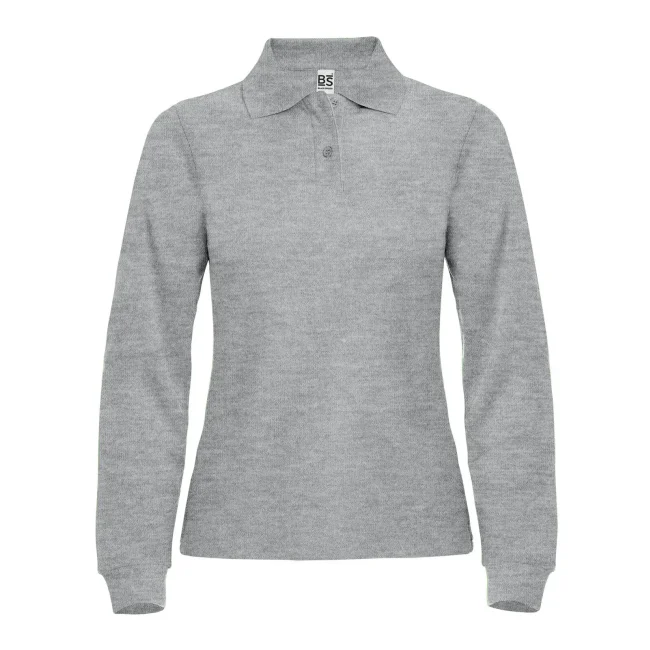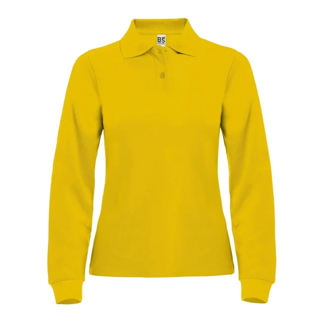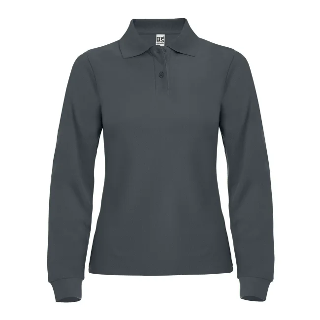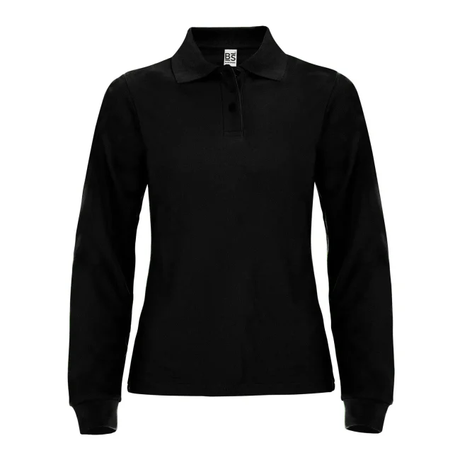 100% cotone piqué. Polo donna a maniche lunghe set-in con costine, 2 bottoni tono su tono, nastro di rinforzo al collo, struttura con cuciture e spacchetti laterali.