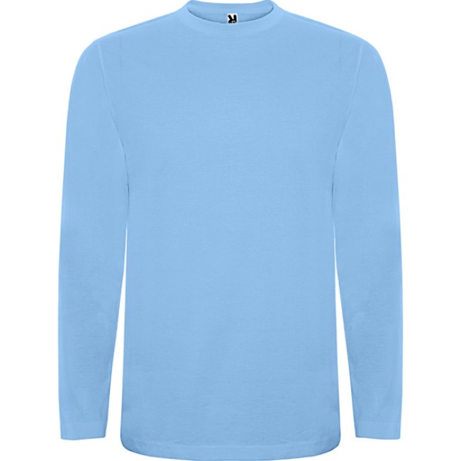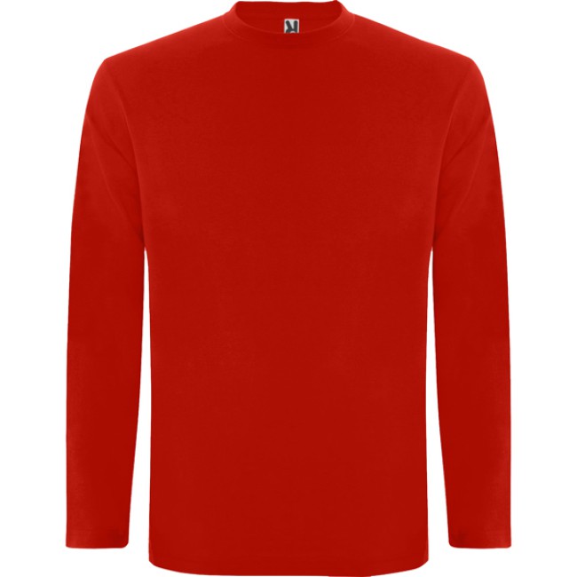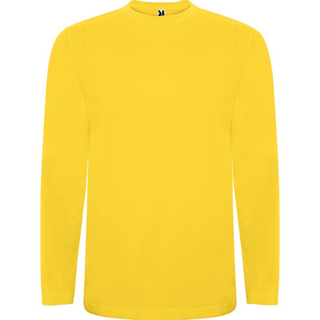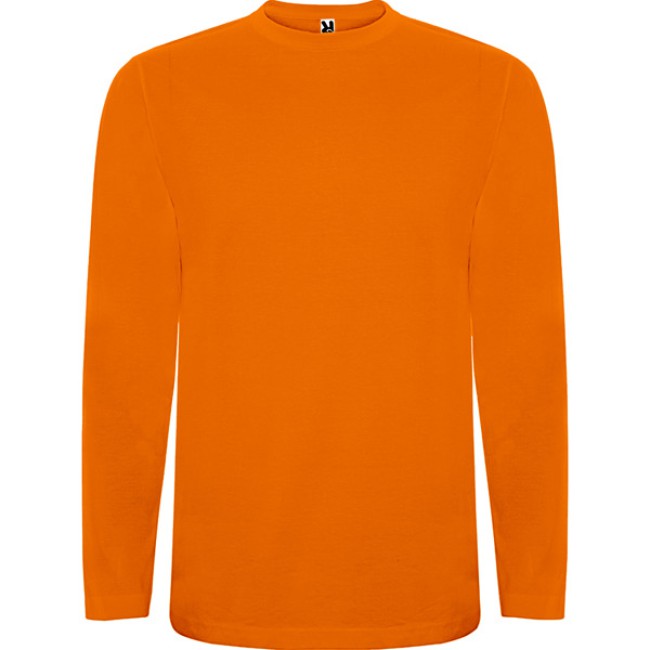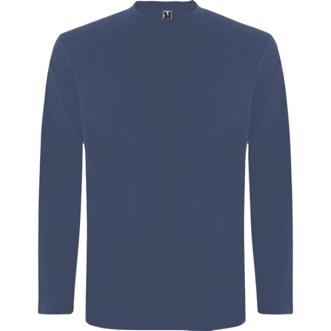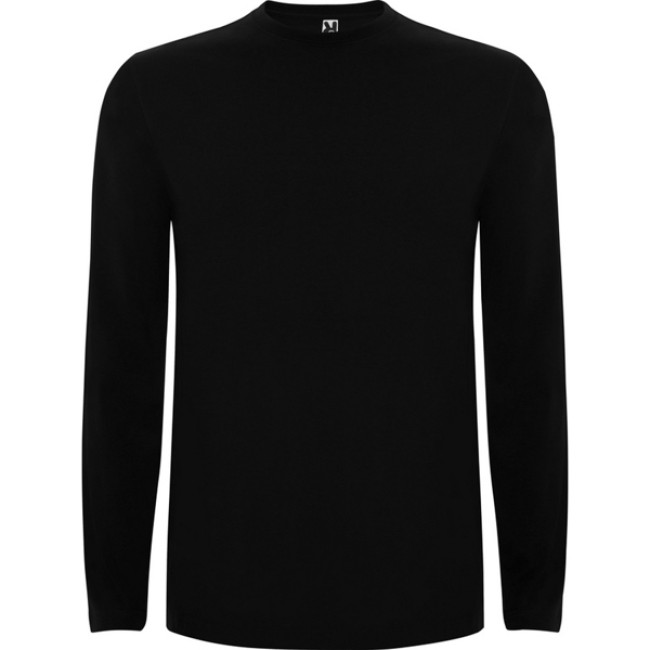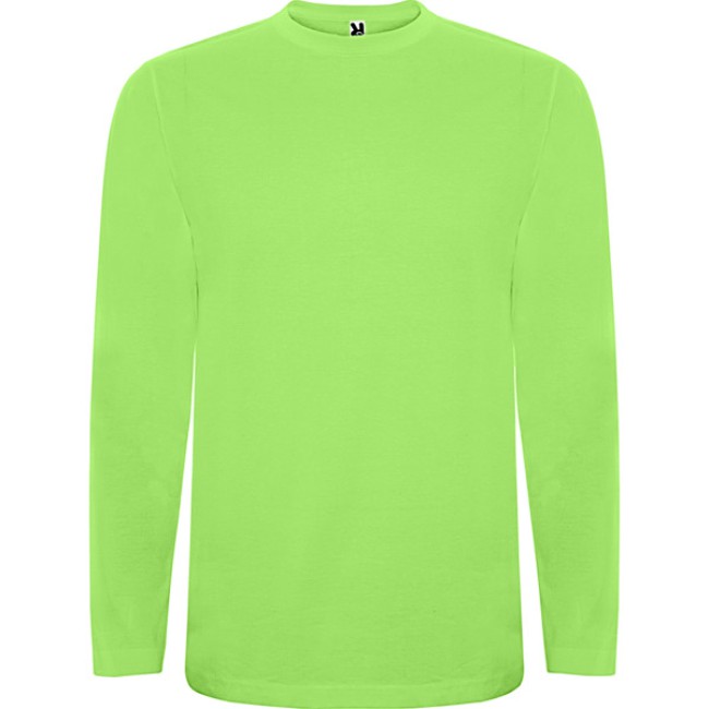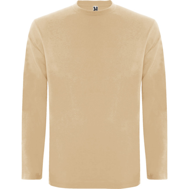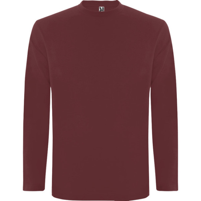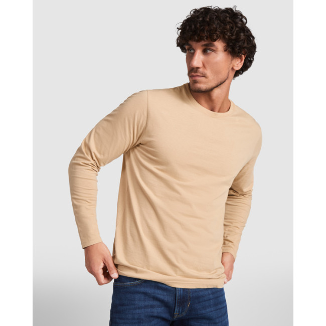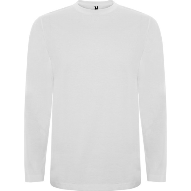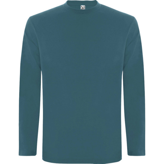 T-shirt manica lunga, tessuto tubolare, girocollo a 4 strati. Copricuciture rinforzate su collo e spalle. Senza polsini.