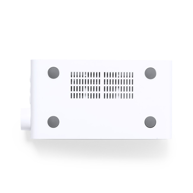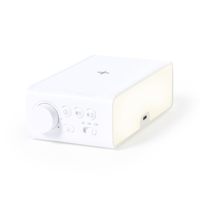 Orologio multifunzionale dall'elegante design, bianco, con caricatore wireless 10W integrato e lampada LED integrata. Con funzione data/ora, allarme e 36 lampada LED con intensità luminosa regolabile. Connessione USB, incluso cavo di tipo C da 100 cm e alimentazione ausiliaria con batterie a bottone (incluse). Compatibile con i dispositivi dotati di tecnologia di ricarica wireless. Confezionato in una scatola dal design accattivante. Conforme ai requisiti di sicurezza:Sistema di protezione dal surriscaldamento.Sistema di protezione da sovraccarico".