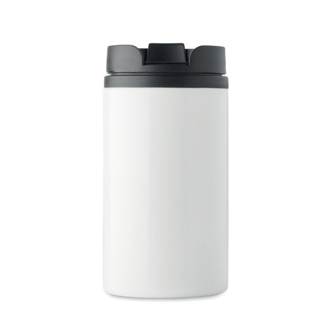 Bicchiere doppio strato in acciaio inossidabile con chiusura ermetica. Interno in PP. Capacità 250 ml.Antigoccia.