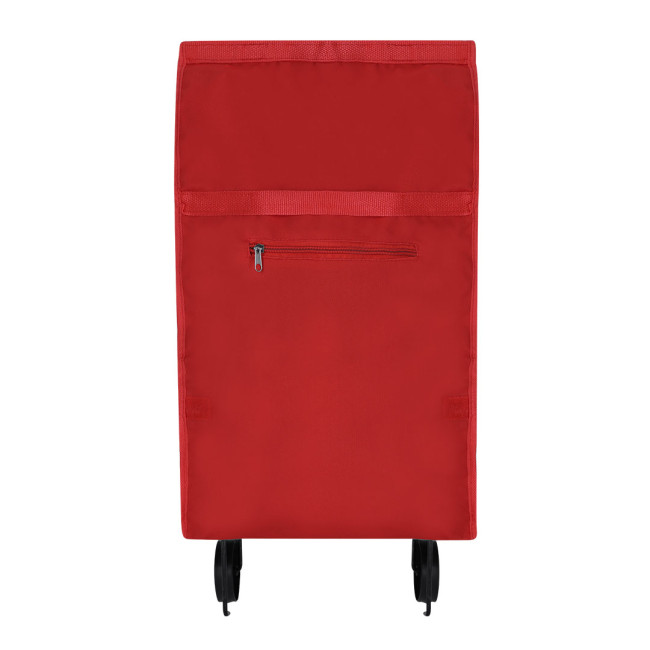 Carrello spesa pieghevole in resistente poliestere 600D in vari colori vivaci. Con manici in nylon rinforzato coordinati, tasca frontale con zip coordinata e staffe in metallo. Dimensioni ridotte.
