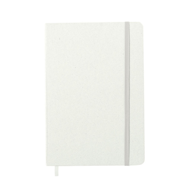 Block notes A5 con copertina rigida realizzata con materiali derivati dalla frutta. All'interno 80 fogli a righe, con segnalibro ed elastico coordinati. Disponibile in colori assortiti con finitura kraft. Include il logo Fruit Paper sul retro della copertina. Presentato in un sacchetto individuale riciclato.Mescolando gli scarti e i residui dell'industria agroalimentare con altri materiali riciclati, si ottiene una carta sostenibile al 100%: la carta frutta. Incoraggiarne l'uso contribuisce al riutilizzo dei materiali e a un maggiore impegno ambientale.