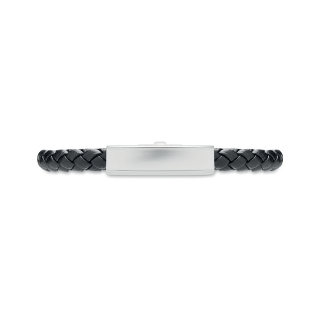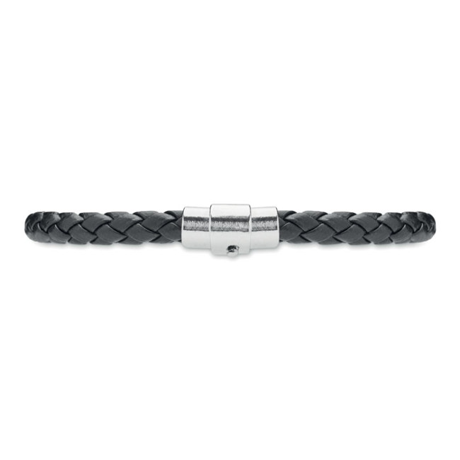 Bracciale intrecciato in ecopelle con hardware in acciaio lucido. Chiusura push-lock. Circonferenza polso: 18 cm.