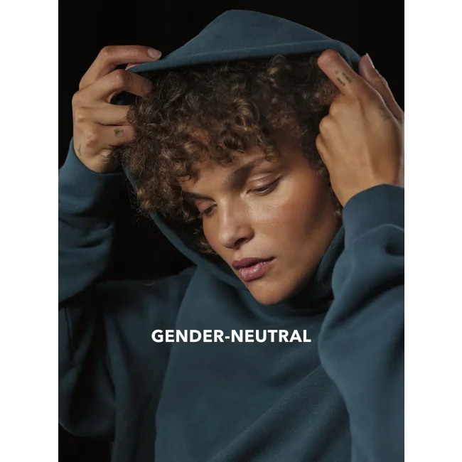 Felpa con cappuccio a mantellina in cotone e poliestere riciclato, caratterizzata da un taglio oversize e spalle scese. Il tessuto felpato internamente offre una sensazione lussuosa al tatto. Priva di etichetta, è ideale per la personalizzazione.