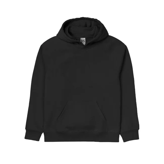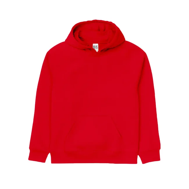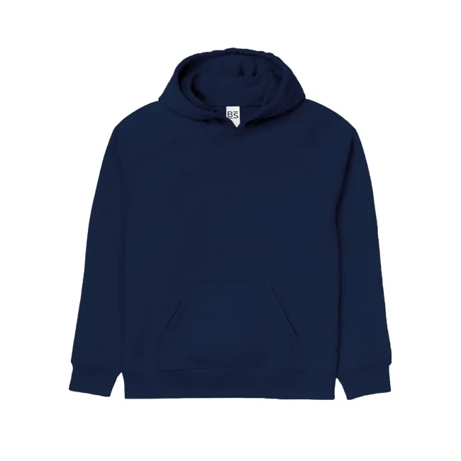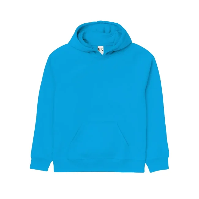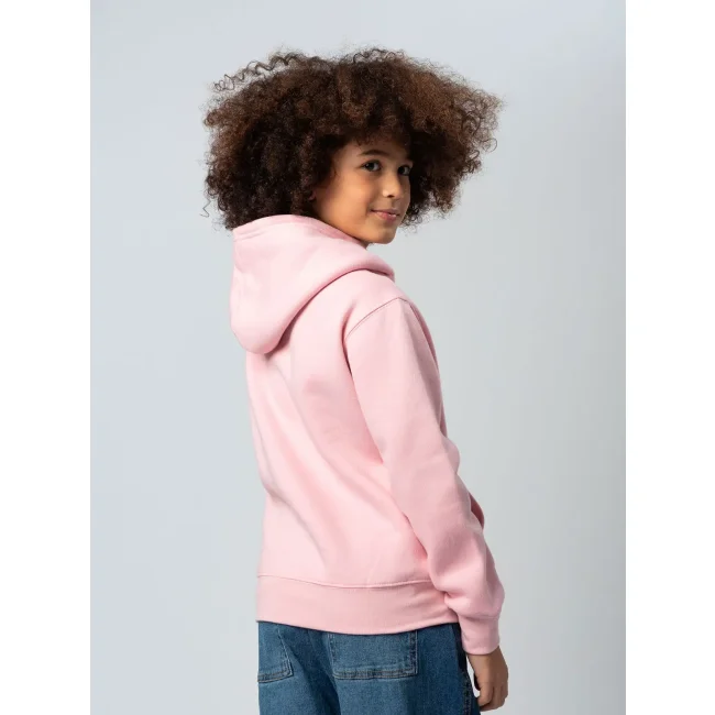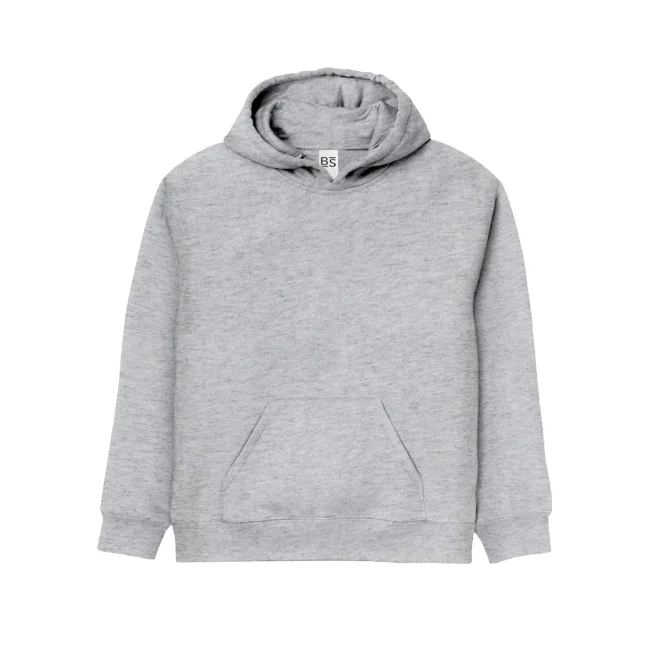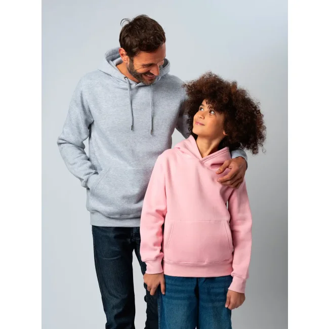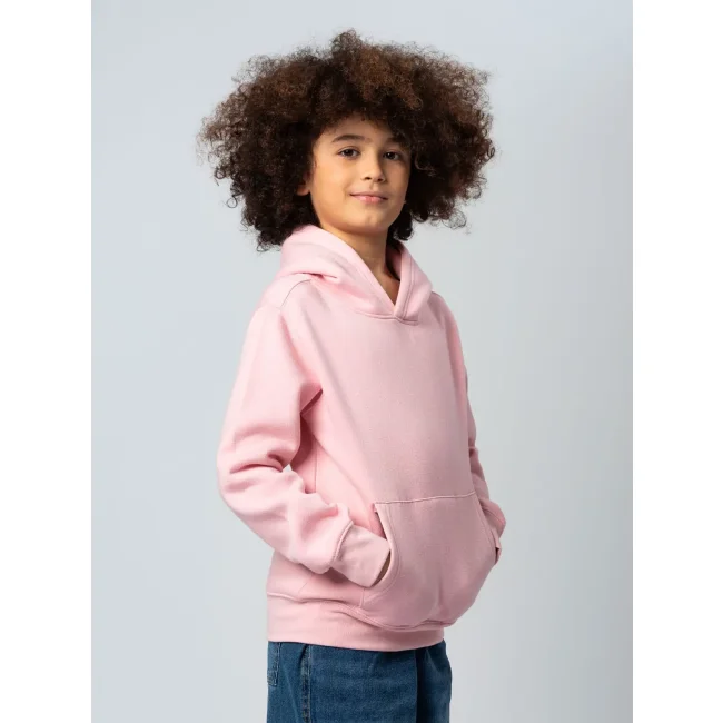 70% cotone, 30% poliestere. Tessuto interno in poliestere ed esterno 100% cotone. Felpa da bambino con maniche set-in, unisex, felpata internamente, cappuccio a doppio strato, grande tasca a marsupio, struttura con cuciture laterali, fascia in vita e polsini in costina. Etichetta strappabile.