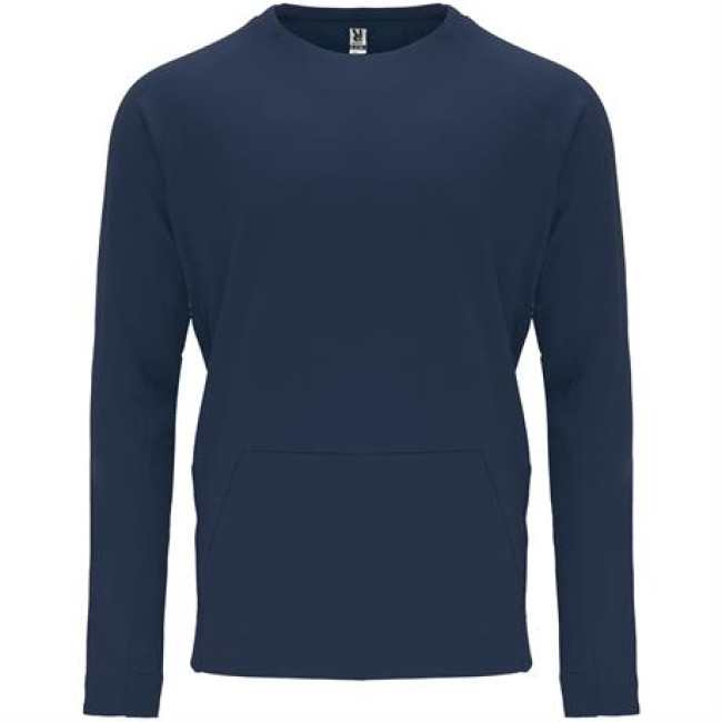 Felpa manica lunga in stile ranglan, dotata di tasca a canguro senza cuciture e cuciture laterali diagonali verso la parte frontale. La parte posteriore del collo e la parte inferiore dei polsini sono in costina 1X1, garantendo comfort e stile. Personalizzabile con logo per un look unico.