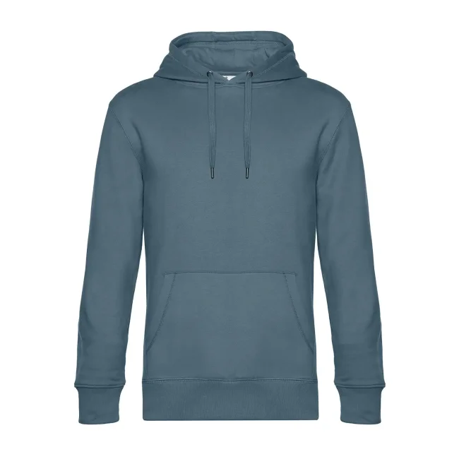 Felpa KING Hooded realizzata in cotone ring-spun e poliestere, con cappuccio foderato in jersey e cordoncini piatti. La struttura con cuciture laterali e il nastro parasudore resistente garantiscono un look premium e una maggiore durata. Personalizzabile con logo.