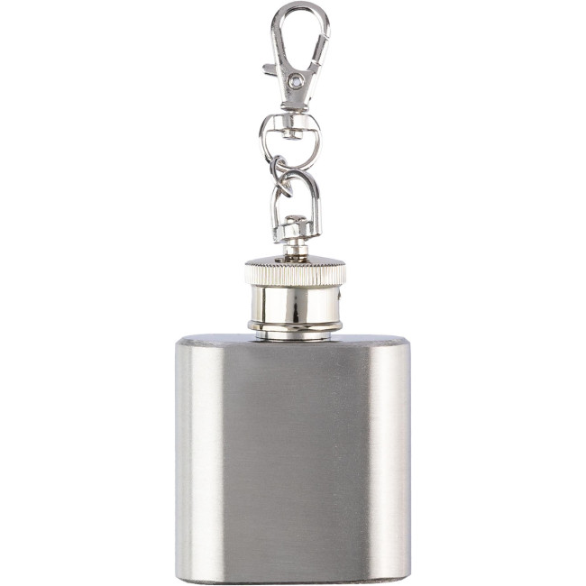 Fiaschetta in acciaio inossidabile 304, portachiavi con moschettone, confezionata singolarmente in una scatola in cartone avana, capacità 30 ml