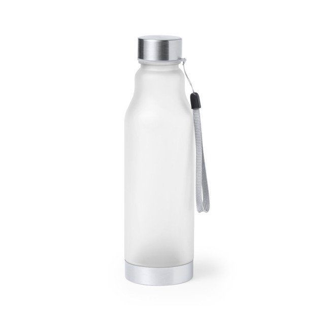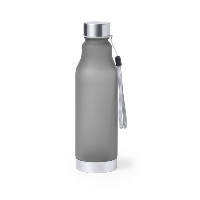 Borraccia con capacità di 600 ml. Senza BPA, con corpo in RPET ricavato da plastica riciclata, per promuovere il riutilizzo dei rifiuti plastici e contribuire alla sostenibilità del pianeta. Tappo a vite in acciaio inox, con cavo di trasporto e base coordinati. Disponibile in un'ampia gamma di colori.