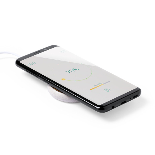 Caricabatterie wireless con un design circolare con una superficie di ricarica in bambù e un rivestimento in canna di grano, al fine di promuovere l'uso di materie prime naturali e ridurre le emissioni inquinanti. Indicatore led, con cavo di ricarica micro USB incluso e compatibile con dispositivi dotati di tecnologia di ricarica wireless. Protezione di sicurezza per prevenire surriscaldamento, sovraccarico e cortocircuito. Presentato in un'attraente scatola dal design naturale