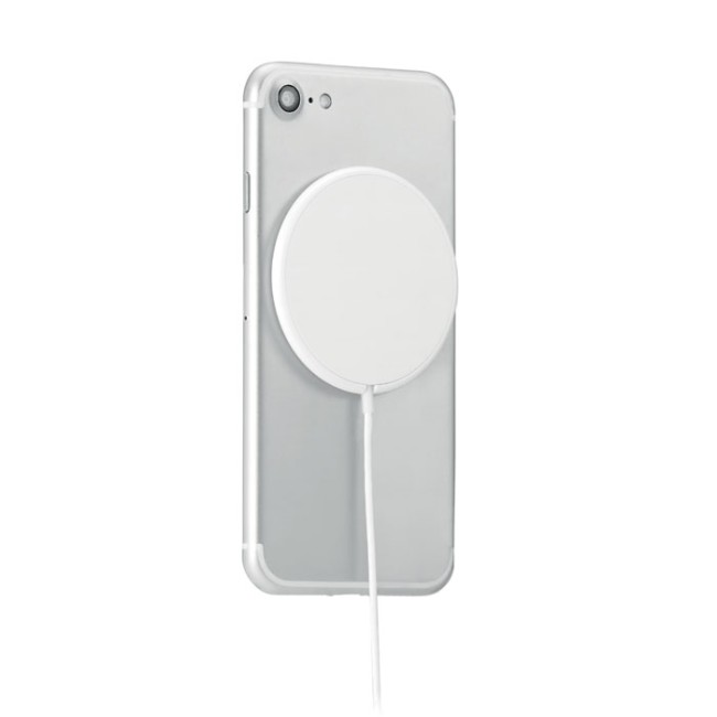 Caricabatterie magnetico wireless in ABS, per ricaricare lo smartphone in modalità wireless. Poiché ha un magnete all'interno, il telefono rimarrà sempre sotto carica anche mentre lo si utilizza., quindi è ottimo quando è necessario caricare il dspositivo senza rinunciare ad una telefonata o a vedere un video. Questo caricabatterie include un anello metallico magnetico aggiuntivo per supportare la ricarica di telefoni ricaricabili wireless non magnetici. Compatibile con iPhone® 12 e successivi. Uscita: DC 9V/1.1A (10W) per una ricarica più rapida.