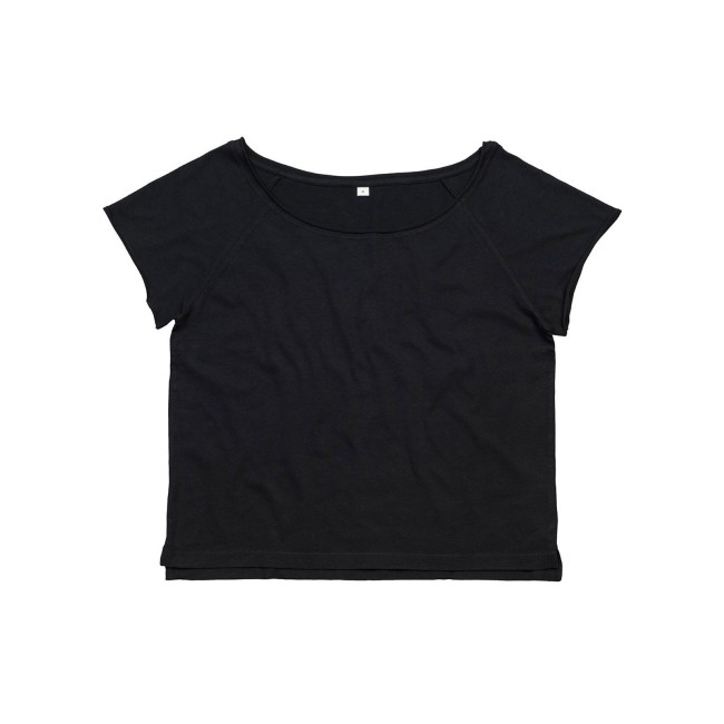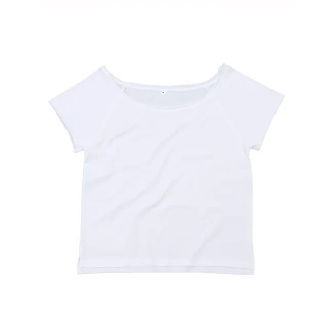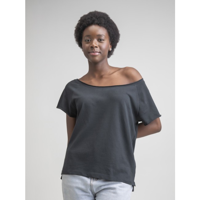 100% cotone organico. Single jersey. T-shirt manica corta raglan, giromaniche con orlo arrotolato, ampia vestibilità, scollatura a taglio vivo, spalla scoperta, spacchetti laterali, etichetta strappabile.