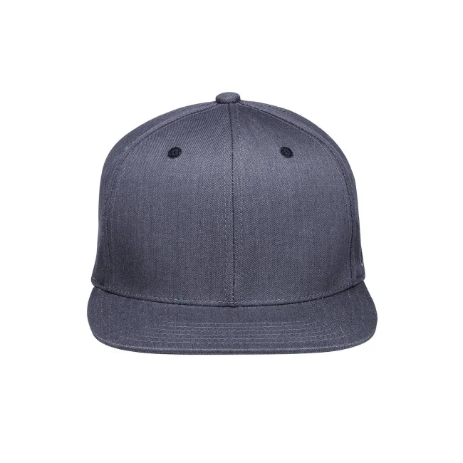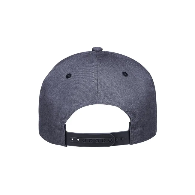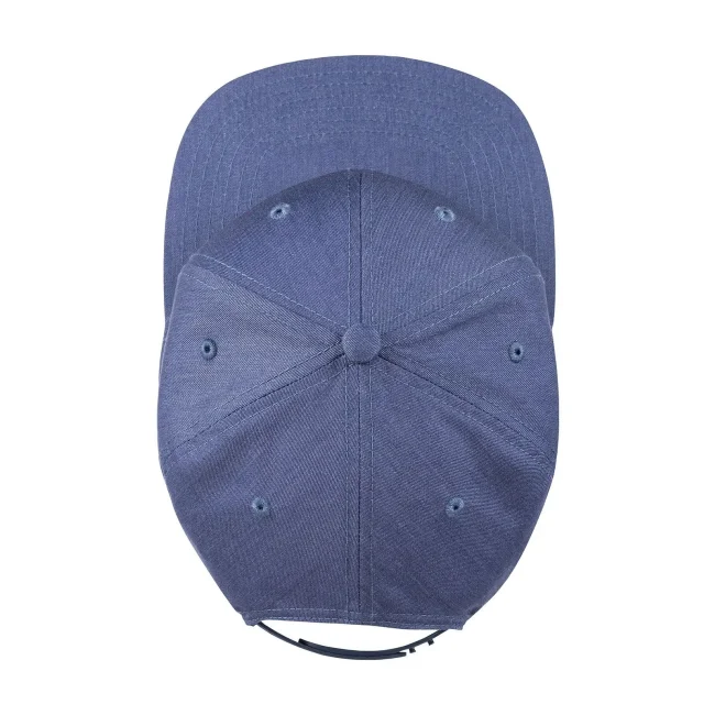 65% poliestere, 35% cotone. 195 g/m². Cappellino a 6 pannelli con visiera piatta in stile Jeans, 6 occhielli ricamati, 8 cuciture ornamentali sulla visiera. Regolabile tramite chiusura Click & Snap. Lavare a mano.