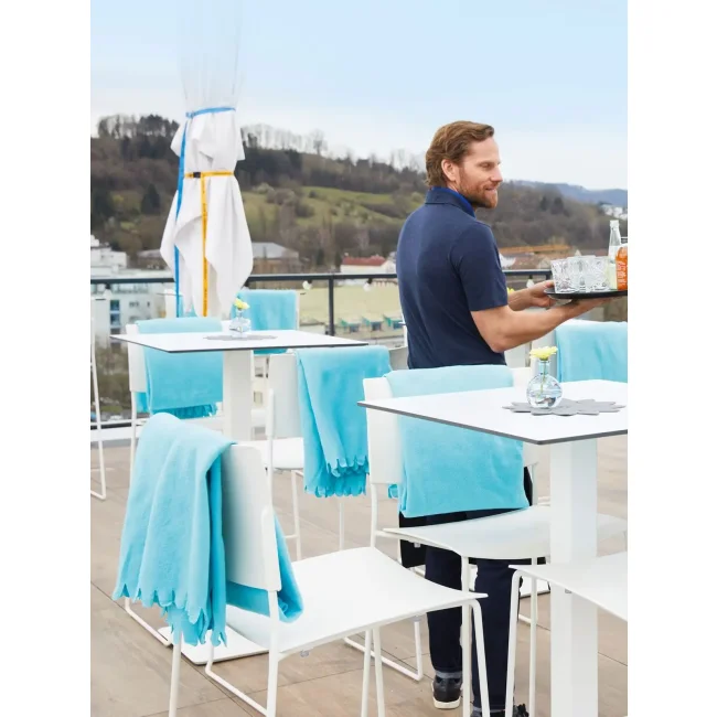100% poliestere. Coperta in pile con frange arrotondate Utilizzabile in vari modi durante il tempo libero e nel settore gastronomico, Pratico pile anti-pilling, Pacchetti regalo, decorativi con fascetta, Dimensioni: 125 x 150 cm.