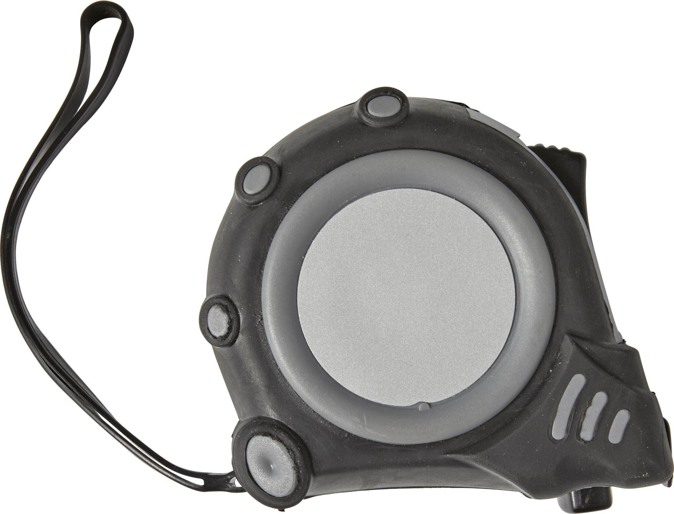 Flessometro 5 metri con bottone d'arresto, clip per cintura, cinturino da polso, in ABS. Sistema metrico in centimetri e pollici.