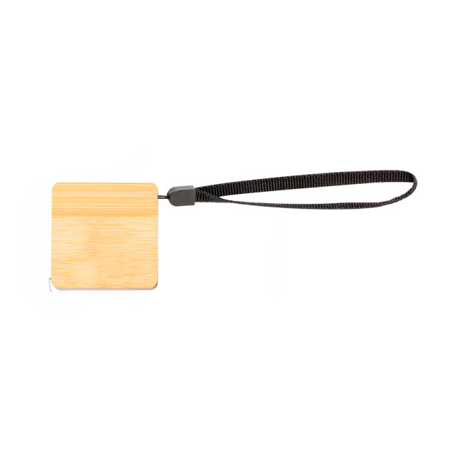 Flessometro Dichen da 1 m in bambù, dotato di lama metallica con misurazioni in centimetri e pollici. Presentato in una scatola kraft, è un prodotto realizzato con materiali naturali che riducono l'impatto ambientale. La cinghia di trasporto aggiunge praticità all'uso quotidiano.