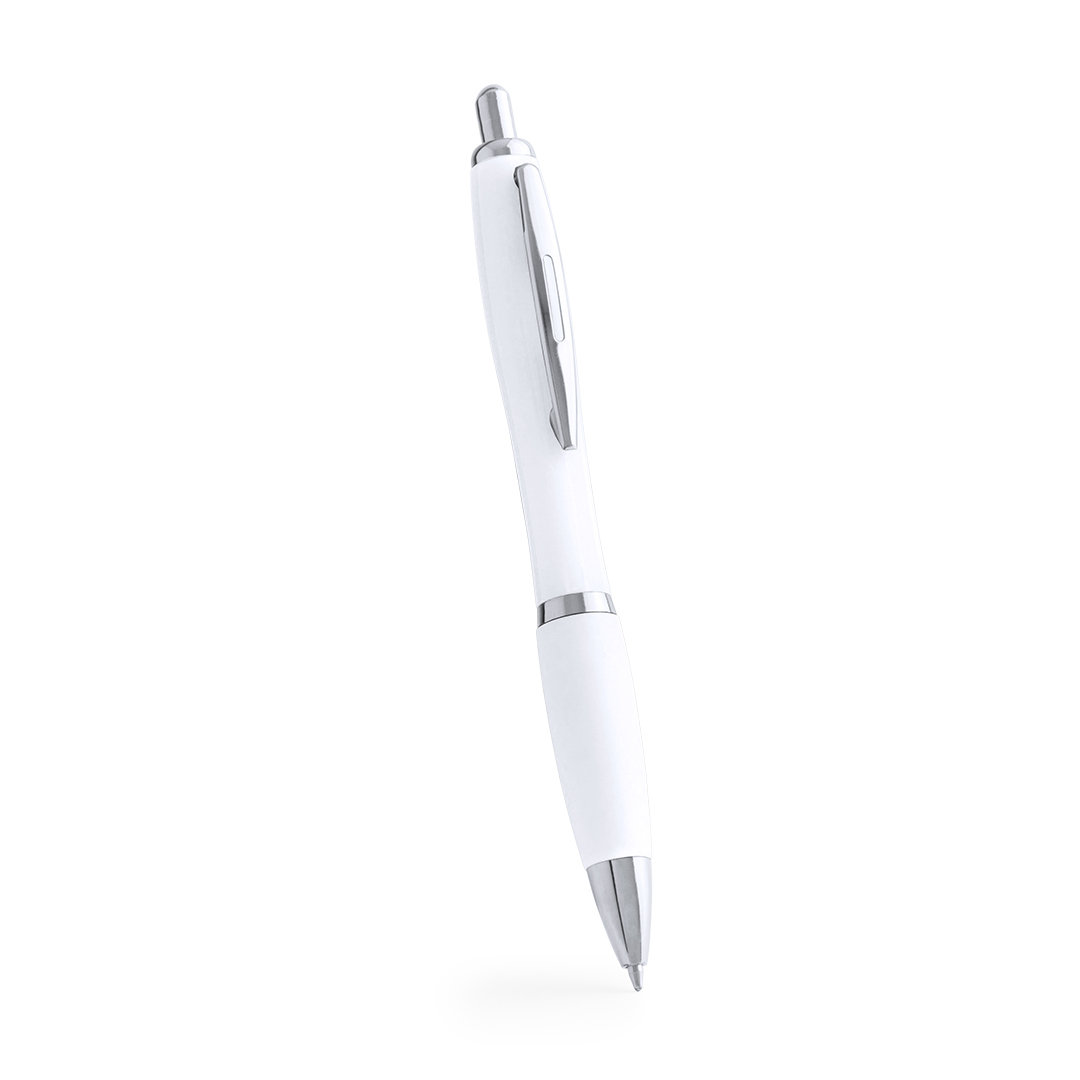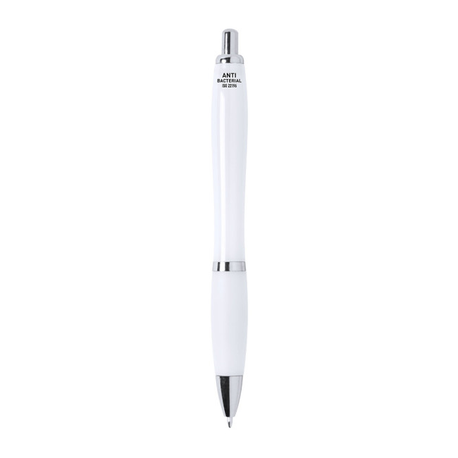 Penna a sfera antibatterica. Realizzato in materiale ABS, appositamente trattato per inibire e prevenire la crescita batterica sul corpo della penna grazie alla tecnologia nano-argento, un trattamento speciale realizzato con ioni argento. Con un meccanismo a spinta, con accessori in argento e un corpo in bianco. Clip tagliata e impugnatura comoda, con inchiostro blu. Articolo secondo la norma ISO 22196: 2011, sulla misurazione dell'attività antibatterica nelle materie plastiche e altre superfici non porose.