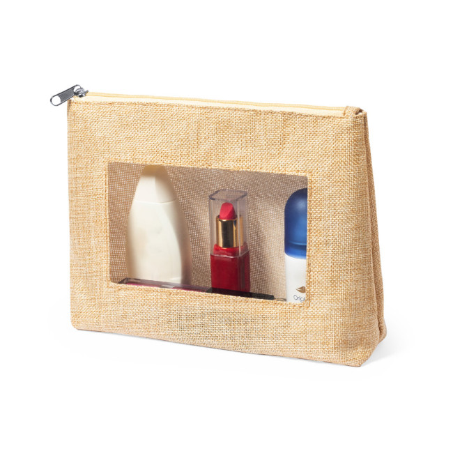 Beauty case ispirato alla natura con finestra su un lato. Con chiusura a zip in tinta e finiture cucite. Realizzato in poliestere ecru, con finestra in EVA trasparente.