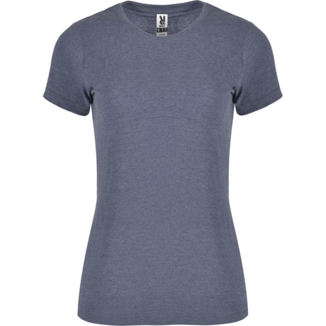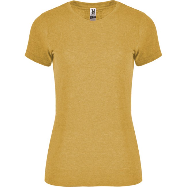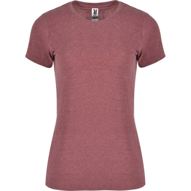 T-shirt a maniche corte leggermente aderente con una finitura melange. Girocollo a costine 1x1 con copri cuciture all'interno. Cuciture laterali.
