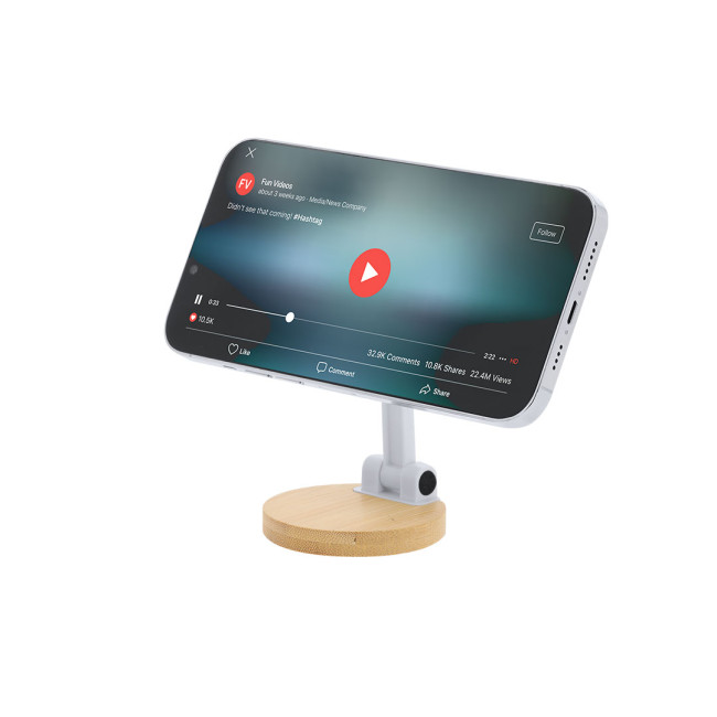 Supporto pieghevole per smartphone. Con fissazione magnetica, MagSafe e posizione regolabile per maggiore comfort. Include anello metallico adesivo.Materiali come il bamboo promuovono l'uso di materie prime naturali, riducendo le emissioni inquinanti. Proviene da una pianta di grande resistenza e versatilità, con crescita e rigenerazione rapida, rappresentando un'ottima alternativa all'uso del legno tradizionale.