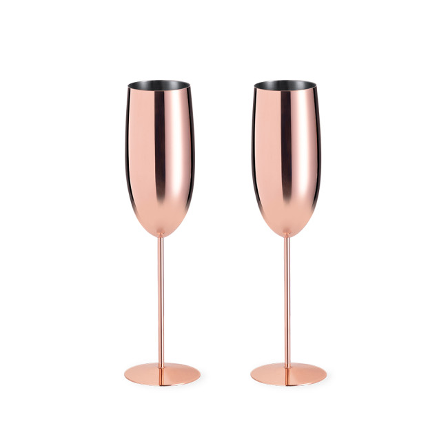 Set di bicchieri da 270 ml dal design sofisticato. Realizzato in acciaio inossidabile, con rivestimento in rame galvanizzato e finitura lucida. Presentati in un'esclusiva scatola individuale dal design nero.