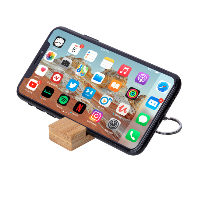 portachiavi in bamboo portachiavi con anello vano a supporto per smartphone forma rettangolare