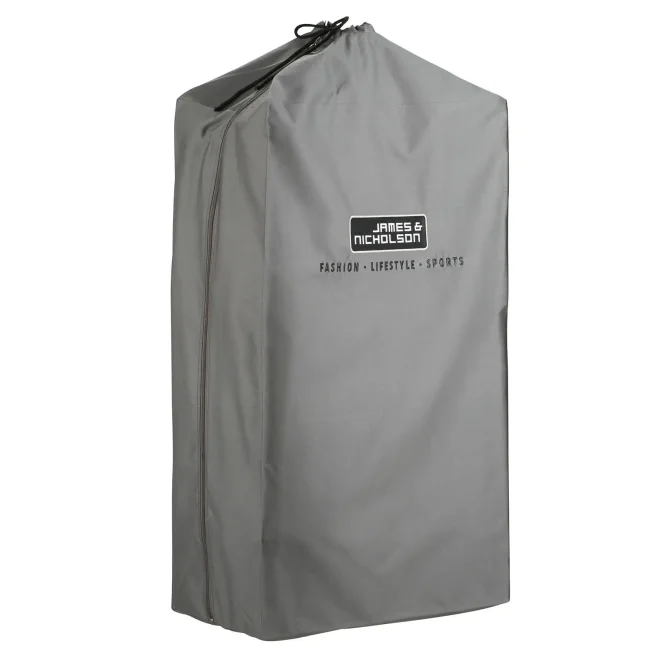 65% poliestere, 35% cotone. Porta abiti con logo Daiber ricamato, adatto per 8-12 appendiabiti, lunga chiusura con zip, cavo aggiuntivo in cotone/ poliestere. Dimensioni: 90x50x30 cm.