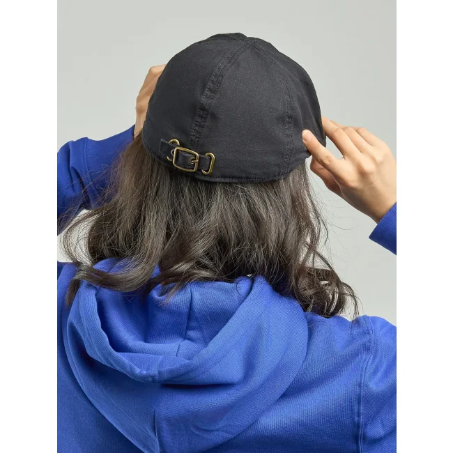 100% cotone canvas organico. Coppola retrò in cotone organico e riciclato, completamente chiusa, con fibbia in metallo. Etichetta removibile. Vecchio codice: ATGSTT