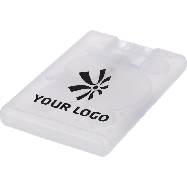 Gel mani formato carta di credito, in PET, capacità 20 ml, senza etanolo.