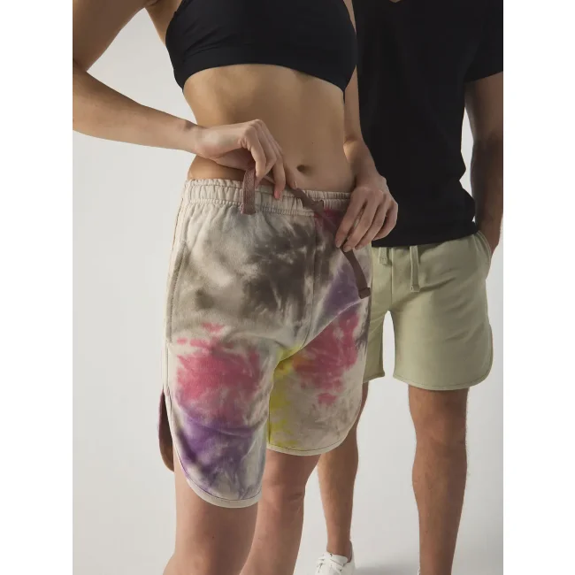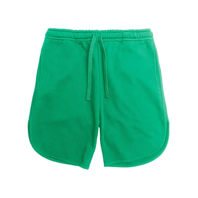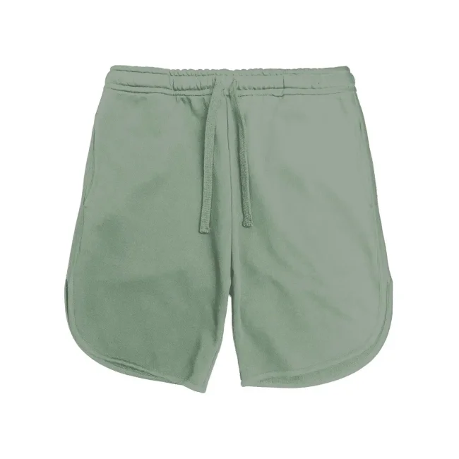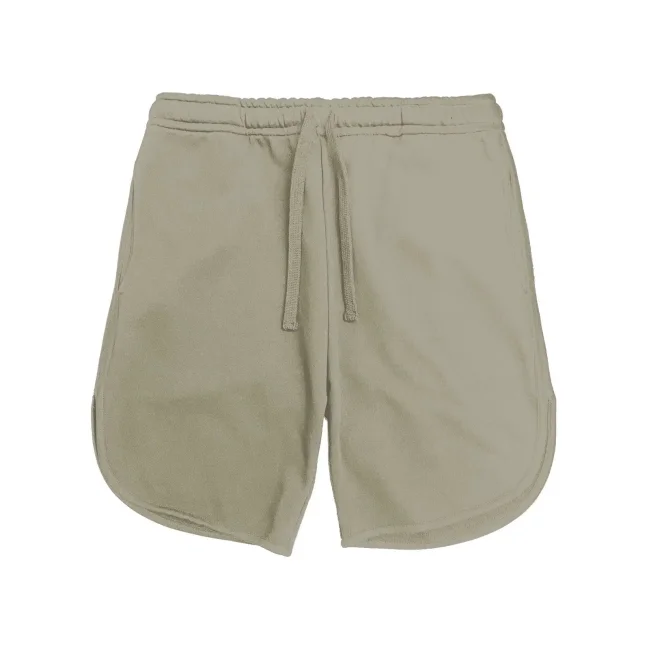 100% cotone. Pantaloncini genderless in felpa french terry, girovita elastico con cordino piatto tono su tono, tasche laterali. Bande laterali in terry reverse, orlo con bordino tono su tono. Colore PW adatto al tinto in capo e tinture batik, cucitre 100% cotone, tessuto lavato prima del taglio per evitare restringimenti. Composition Grey Heather: 93%Cot 7%Pol.