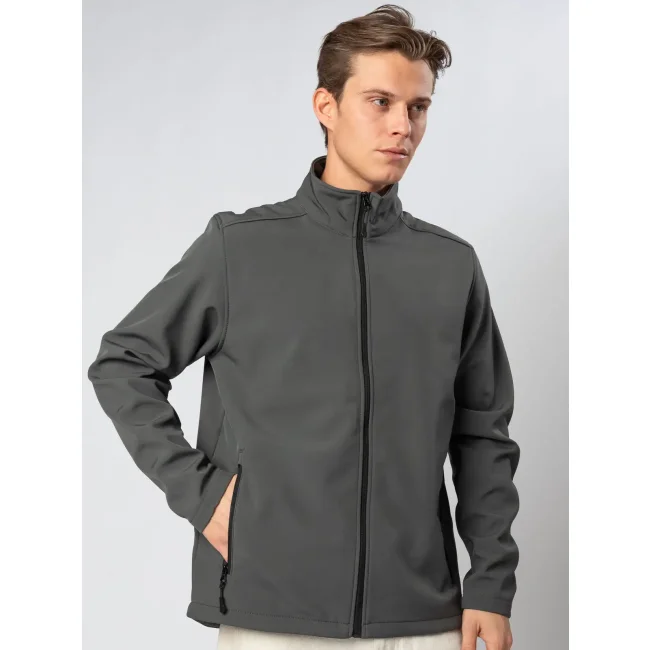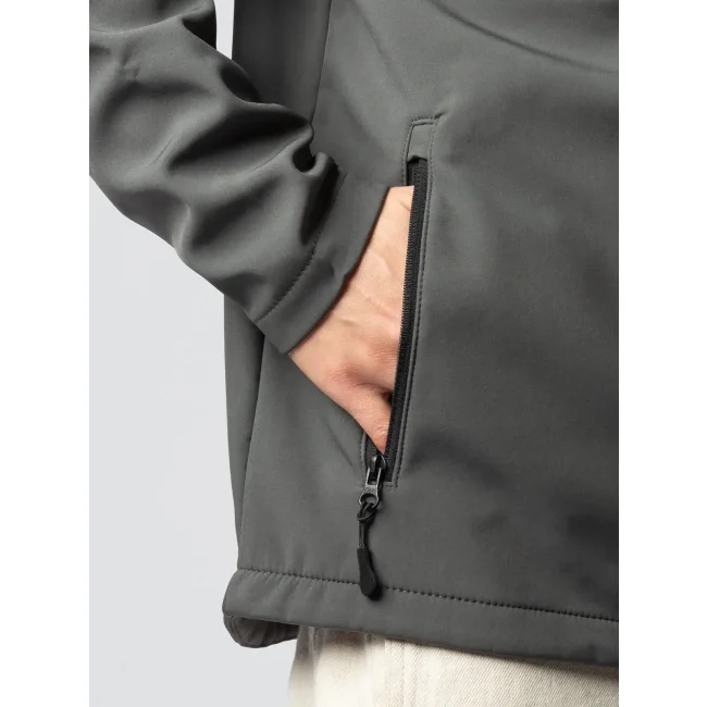 96% poliestere, 4% elastan. Giacca in softshell a 2 strati, micropile, 2 tasche laterali con cerniera. Etichetta strappabile.