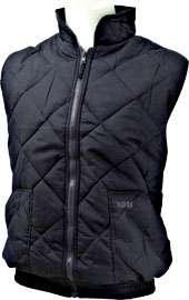 Gilet imbottito in colore blu trapuntato. Chiusura con zip centrale, tasche esterne, girovita elasticizzato. Confezione in nylon.