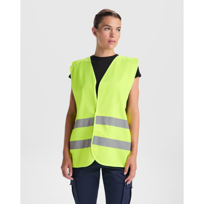 Gilet ad alta visibilità dotato di due bande riflettenti sul petto e sulla schiena, con collo a V e chiusura regolabile con velcro. Progettato per garantire sicurezza e comfort, è personalizzabile per esigenze aziendali, rendendolo una scelta ideale per ambienti di lavoro.