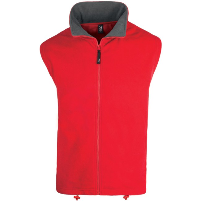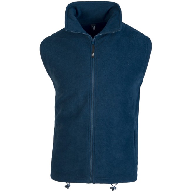 Gilet in pile con collo a lupetto, interno a contrasto.Zip lunga con cursore removibile. Elastico stringivita, 2 tasche laterali con zip nascosta in tinta. Confezione in polybag.