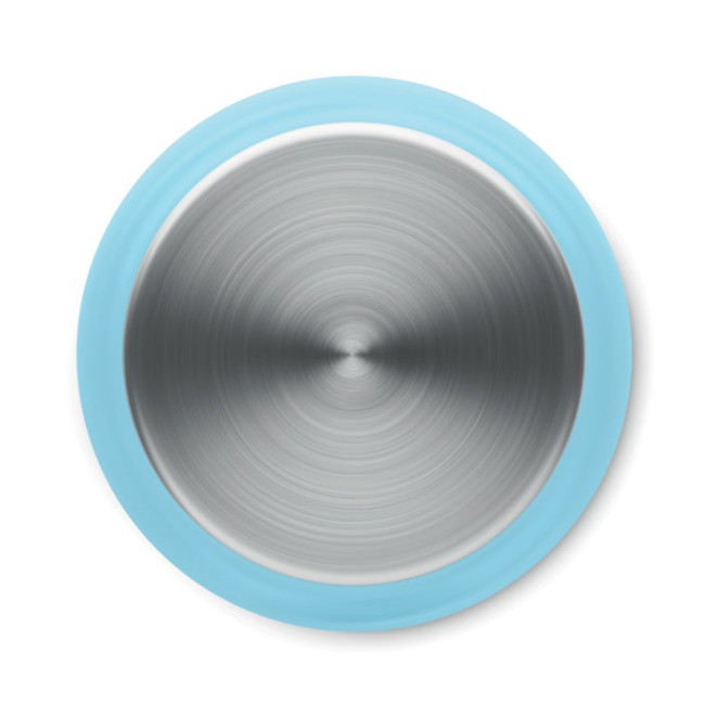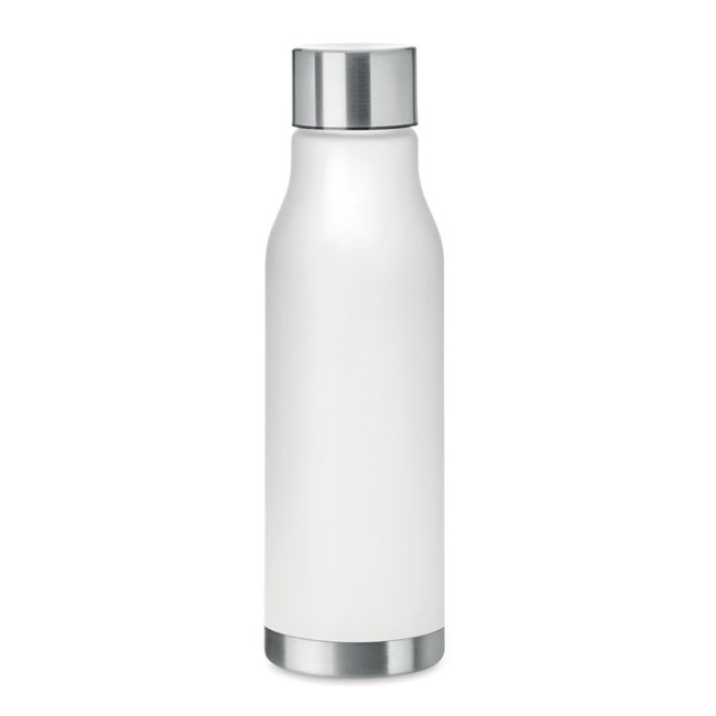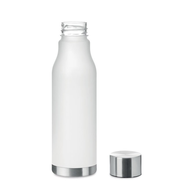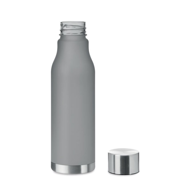 Bottiglia in RPET in acciaio inossidabile e finitura gommata con interno in RPET e anello in silicone. BPA free. Anti goccia. Capacità 600ml. Non adatto a bevande gassate, alcoliche e a base di latte.Antigoccia.