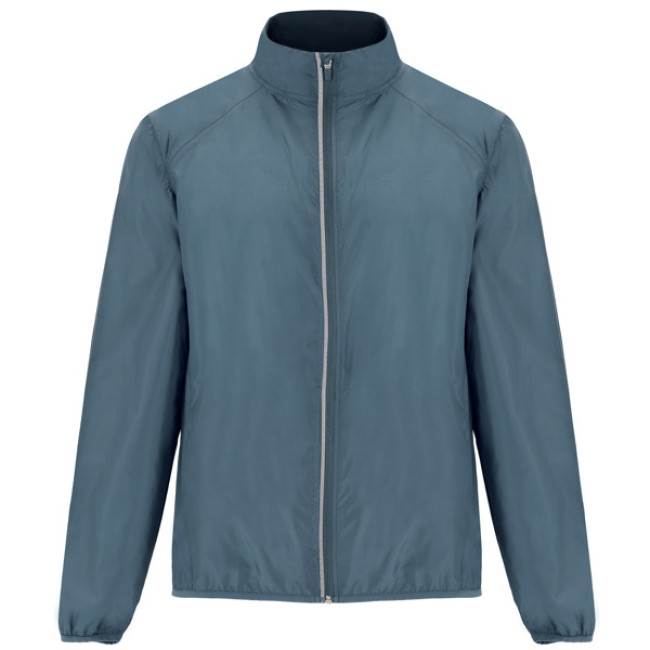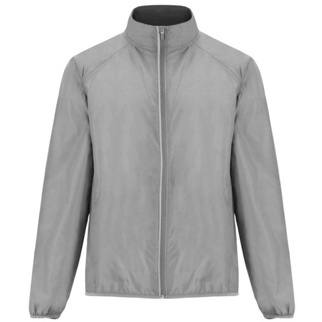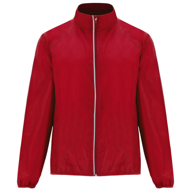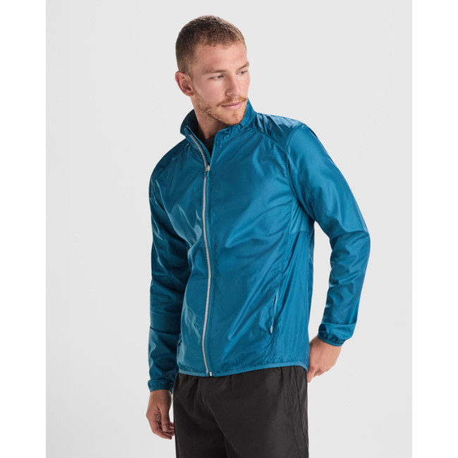 Giacca a vento unisex leggera e traspirante. Zip frontale invertita con dettaglio riflettente. Tasche laterali con zip invertite e due tasche interne. Polsini tono su tono con bordo elastico. Dettaglio riflettente sul retro.