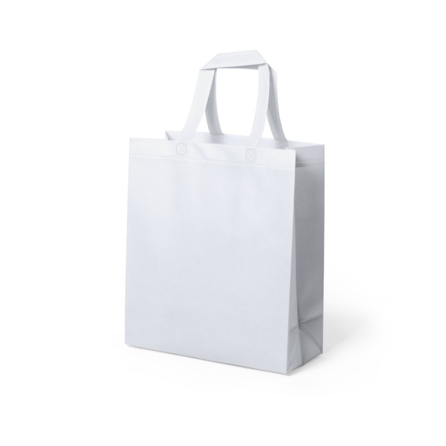 Borsa in TNT da 70 g/m2 di colore bianco, appositamente studiata per la stampa in sublimazione. Finiture termosaldate, con soffietto e manici corti rinforzati (35 x 2,5 cm). Resistenza fino a 8 kg di peso.