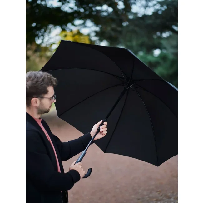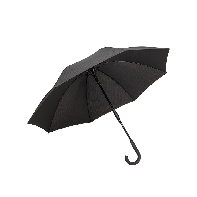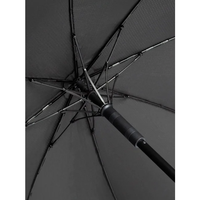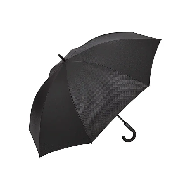 Copertura: 100% poliestere pongee. Manico: plastica. Asta: acciaio. Ombrello con apertura automatica, sistema Windproof, stecche flessibili in fibra di vetro, bastone in acciaio con meccanismo di chiusura ridotto, impugnatura a gancio con dettagli effetto carbonio, tasto di azionamento e possibilità di personalizzazione. Fodera in plastica riciclata waterSAVE®, Diametro ombrello: 125 cm, lunghezza: 93,50 cm, 8 pannelli.