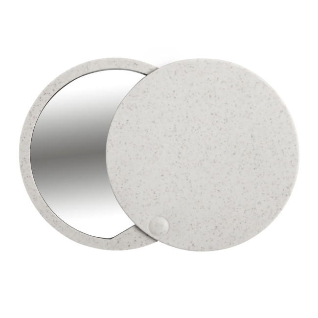 Specchio pieghevole Nature line realizzato in canna di grano, al fine di promuovere l'utilizzo di materie prime naturali e ridurre le emissioni inquinanti.