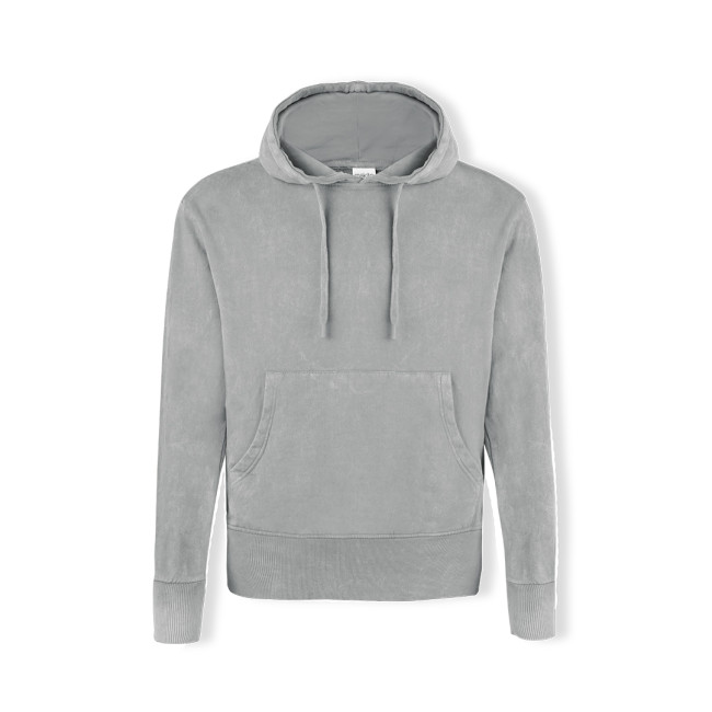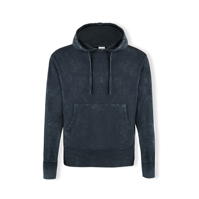 Felpa con cappuccio unisex con tessuto effetto jeans lavato che rende ogni pezzo unico e irripetibile. Tasca a canguro ed elastico extra largo per una vestibilità perfetta. Dettaglio elastico a contrasto su polsini e orlo. Realizzato in 100% cotone pettinato con una grammatura di 280g/m2. Sensazione morbida e taglio moderno. Coulisse piatta e occhielli regolabili, evitando l'uso di metallo. Doppie cuciture per garantire la durata e la resistenza all'uso intensivo. Etichetta facilmente rimovibile. Disponibile nelle taglie XS, S, M, L, XL e XXL.