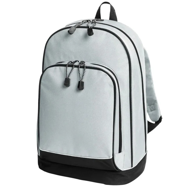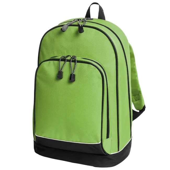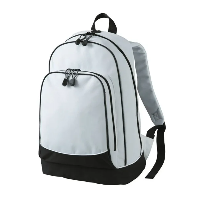 Poliestere 600d. Scomparto principale, tasca frontale con cerniera con elementi organizer, scomparto per lettore MP3 con apertura per le cuffie, schienale e tracolla imbottiti